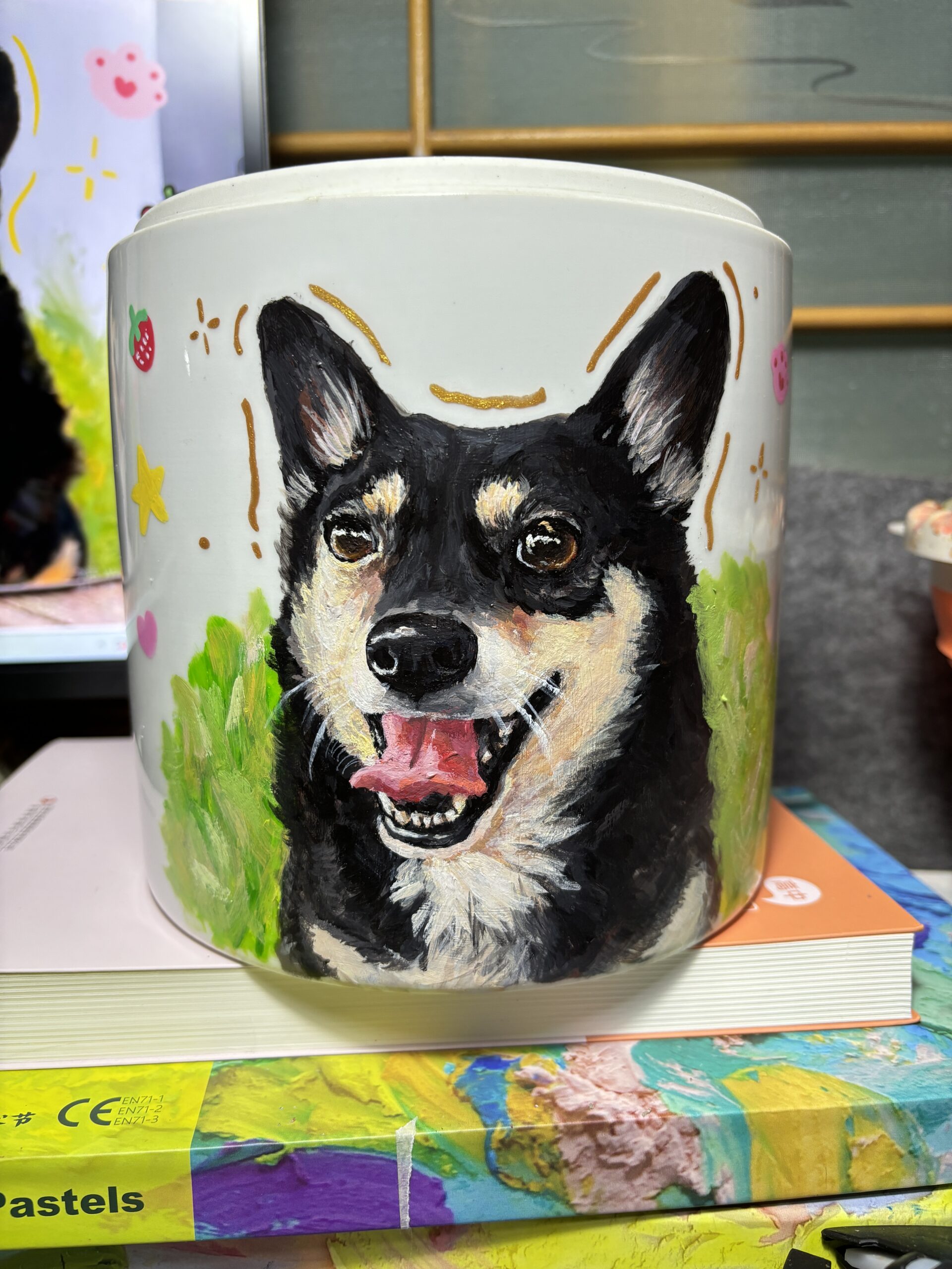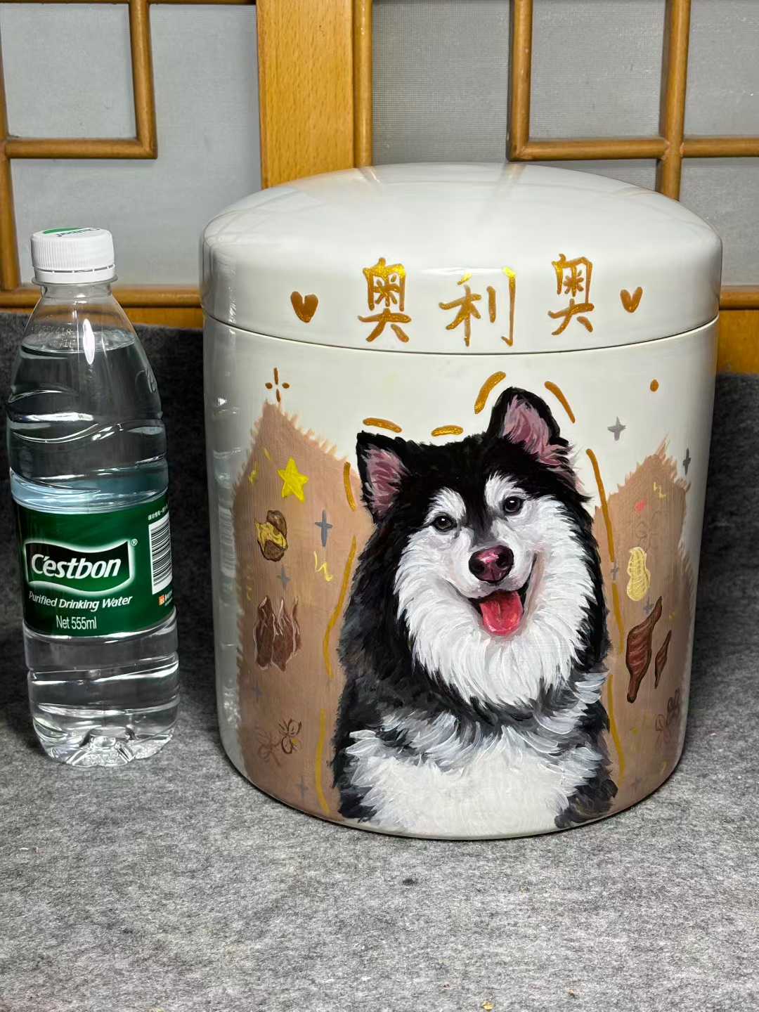 Custom-painted pet urn/memorial box-Cylindrical design(Top choice for large dogs.)