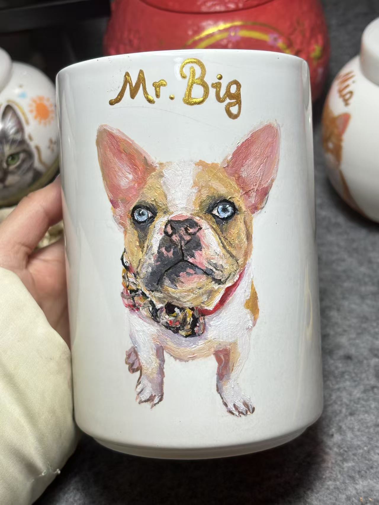 Our bespoke hand-painted pet urn/memorial jar boasts exceptional airtightness, effectively protecting the ashes from moisture and external factors for years to come. Beyond its practical function, it holds immense sentimental worth: customized with handcrafted artistry, it stands as a timeless keepsake that honors your furry friend’s life and the joy it brought into your home.