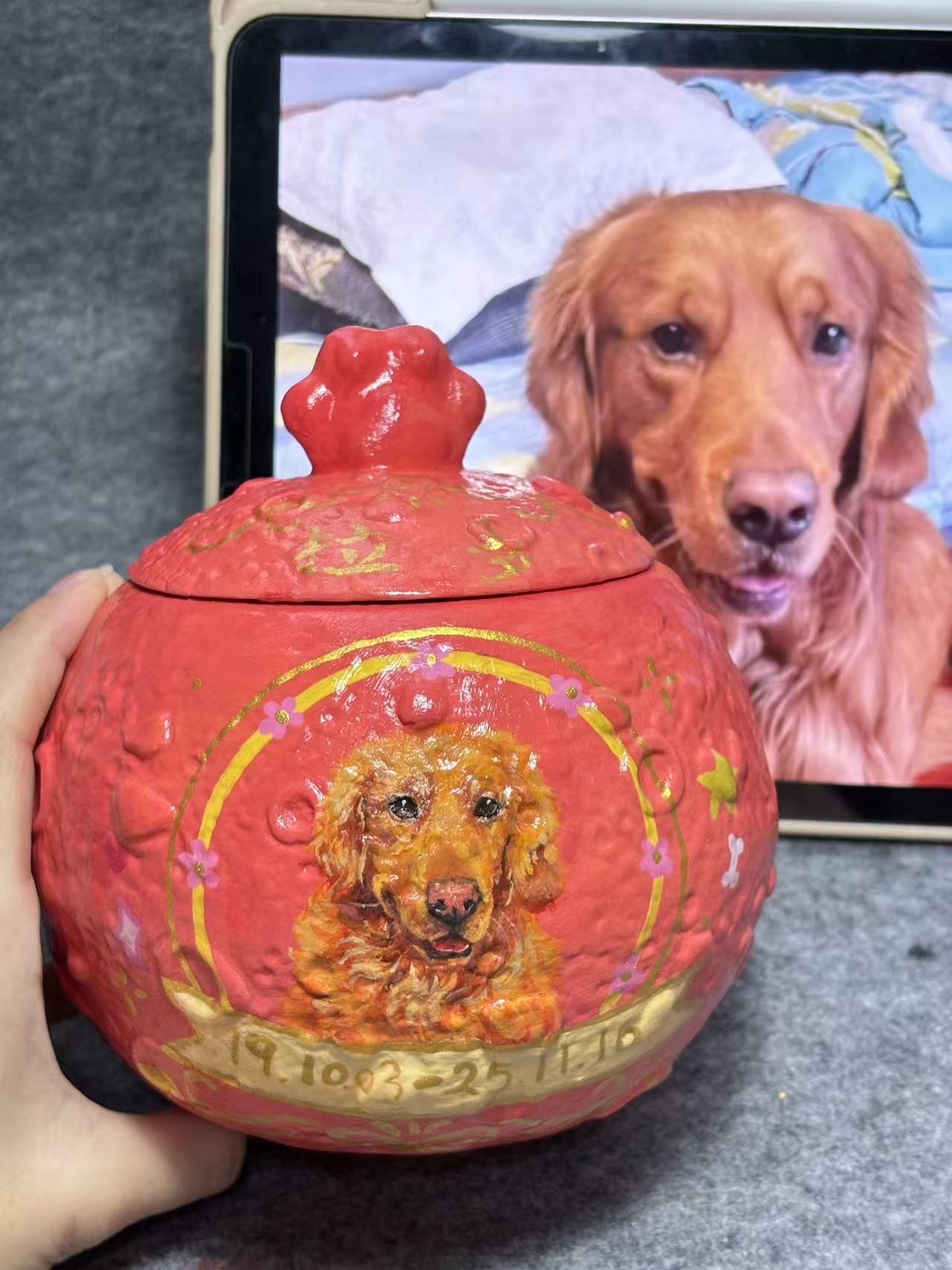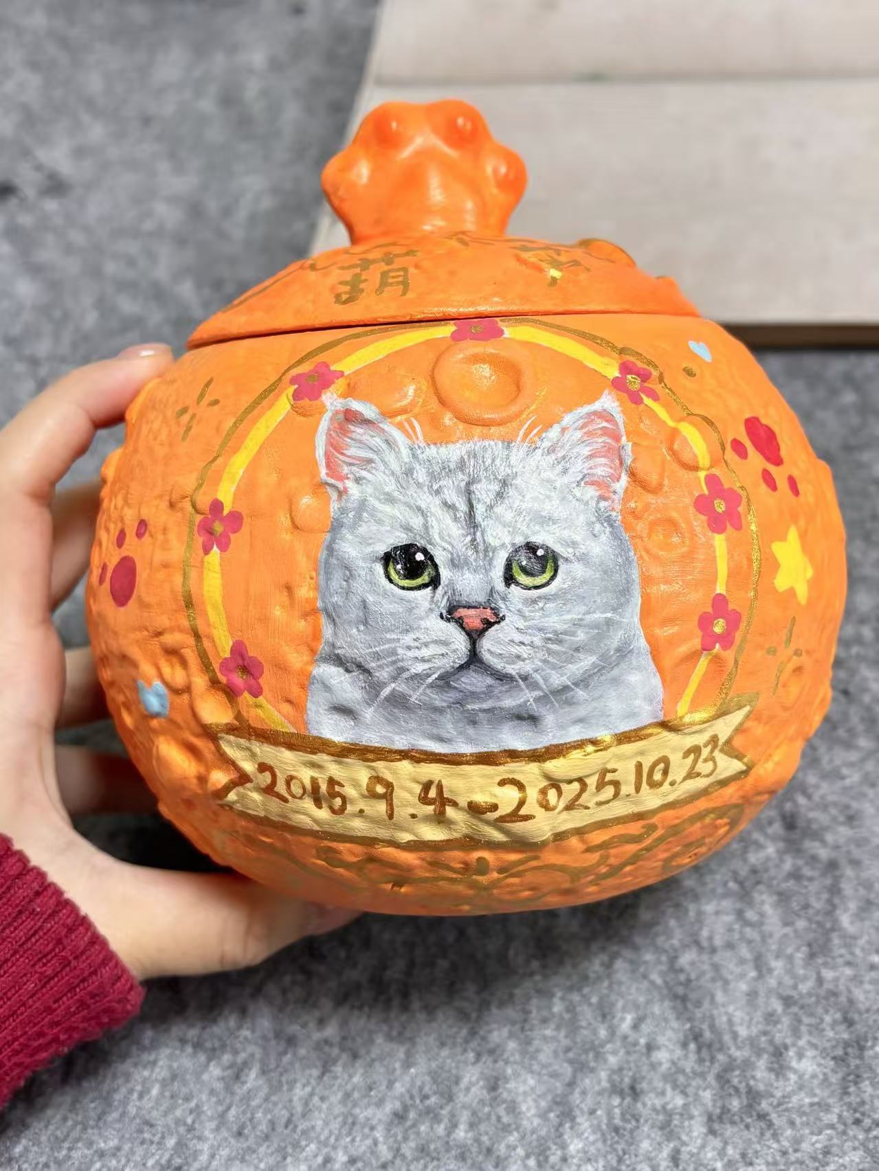 This personalized hand-painted pet urn/memorial jar features a premium airtight closure that locks in the precious remains of your pet, providing reliable and durable preservation. Its greatest significance lies in commemoration—each stroke is infused with love, making it a unique and touching memorial that lets you hold your pet’s memory close to your heart always.